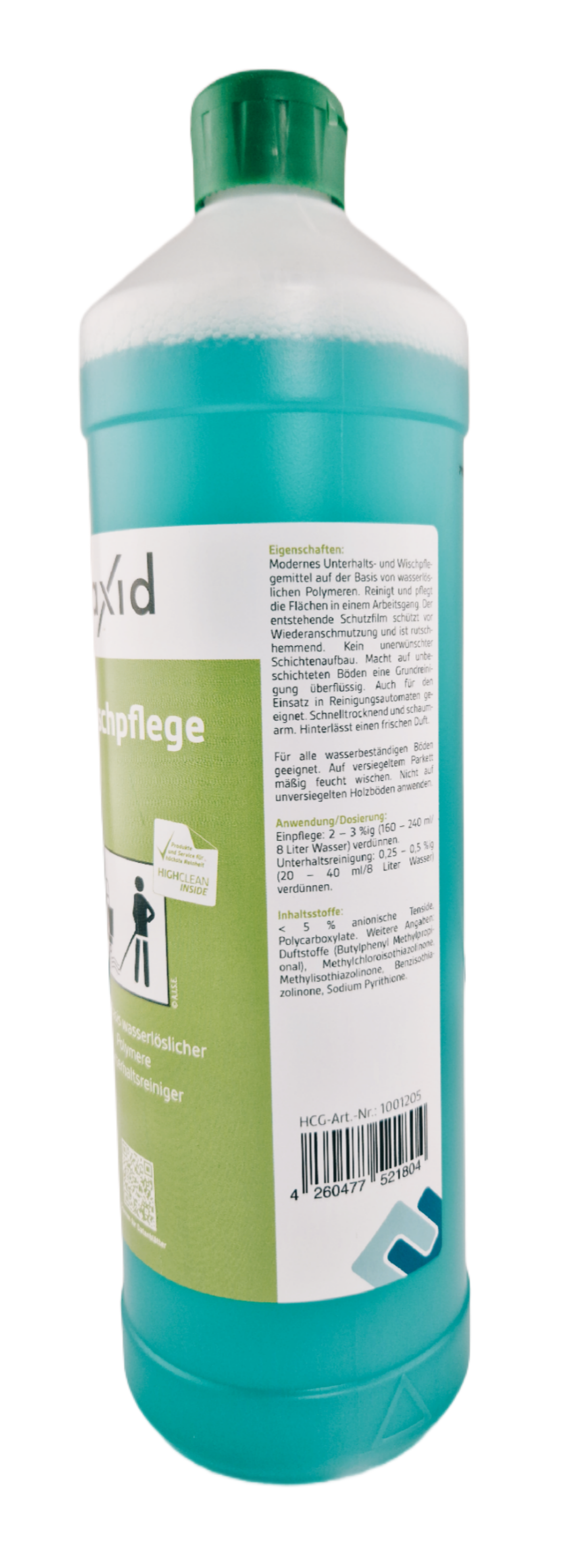 Axid Wischpflege ist ein modernes Unterhalts- und Wischpflegemittel auf der Basis von wasserlöslichen Polymeren. Es reinigt und pflegt die Flächen in einem Arbeitsgang. Der entstehende Schutzfilm schützt vor Wiederanschmutzung und ist rutschhemmend.