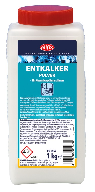 Eilfix® Entkalker Pulver ist ein kraftvoller Entkalker für gewerbliche Geschirrspülmaschinen, Heißwassergeräte, Kaffeemaschinen und Waschmaschinen. Er beseitigt Kalkablagerungen schnell und effektiv, ohne die Geräte zu beschädigen.