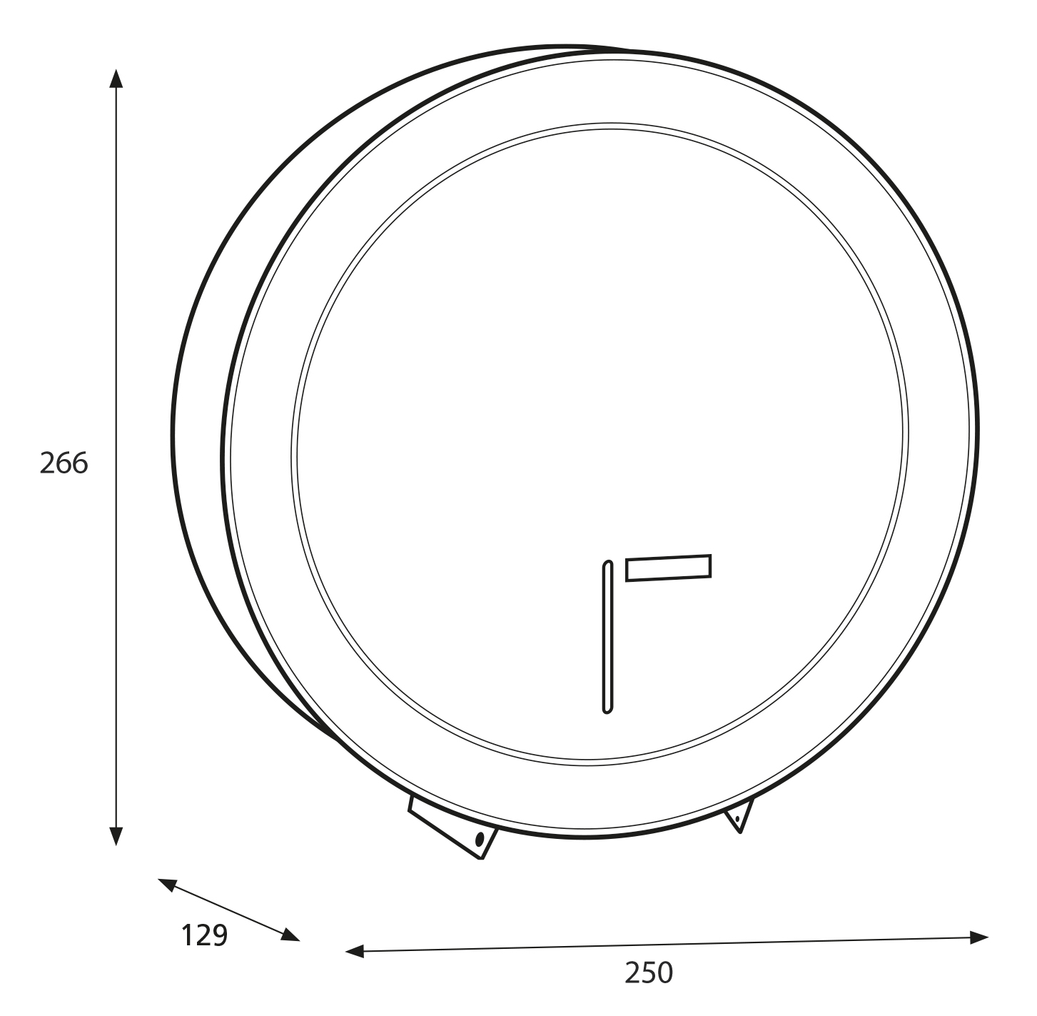 - Abmessungen: 129 mm x 250 mm x 250 mm